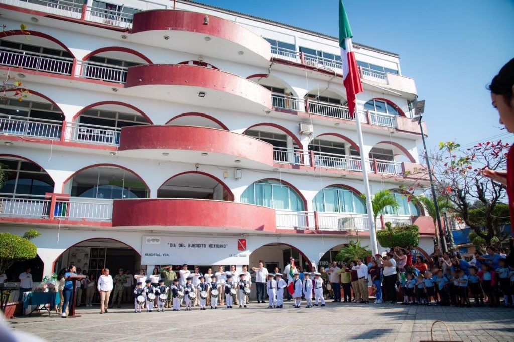 El Gobierno Municipal de Nanchital conmemoró este jueves el Día del Ejército Mexicano con una emotiva ceremonia cívica en el Parque Benito Juárez, en la que se destacó la entrega y compromiso de los elementos de las Fuerzas Armadas en favor de la seguridad y el bienestar de la ciudadanía.